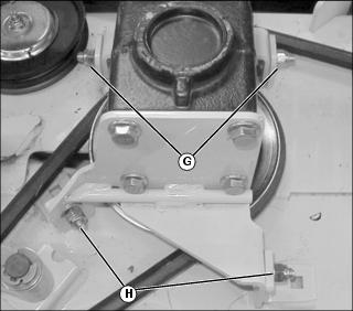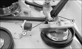 8. Pull idler arm and install idler tension spring (H) on idler arm spring bracket (I).