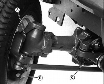 5. Remove differential drain plug (C) from front axle. Drain oil into suitable container.