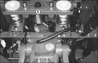 6. On machines equipped with power steering, place a suitable container under the transmission oil filter (D) located under left foot rest.