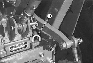19. Remove dipstick (H) located behind seat. Wipe dipstick with a clean rag. Install dipstick and then remove to check oil level.