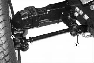 B - Left Steering Cylinder Ball Joint D - Right Steering Cylinder Ball Joint Lubricating Seat Slide Rails2. Lubricate slide rails (A) with SUPER LUBE lubricant. Lubricating 3 Point Hitchˇ Lubricate lift link grease fittings (A) with recommended grease or an equivalent. ˇ Lubricate ball joints (B) and draw bar (C) with SUPER LUBE lubricant. |