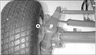 3. Remove dipstick (A) at right side of front axle or the fill plug at same location on left side of front axle.