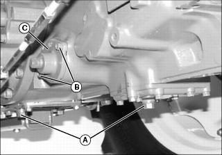 5. Position drain pan under differential drain plug (C). Remove plug and allow oil to drain completely.