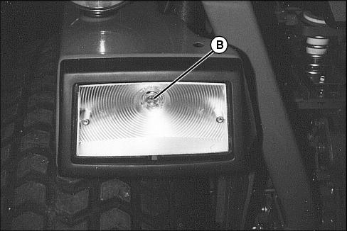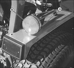 2. Remove three screws (A) and lens (B) from the warning light assembly.