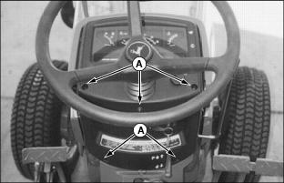 3. Remove five screws (A) from console panel. Remove panel.