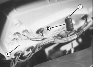 6. Identify defective bulb location and remove bulb holder (D) from instrument panel socket.