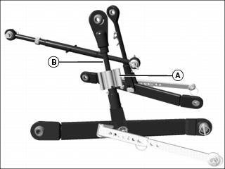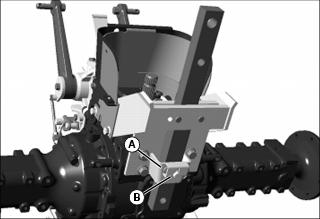 1. Install draft link (A) onto pin (B) on each side of transaxle.