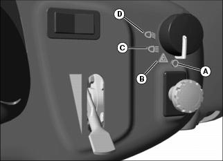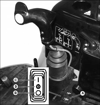 A - Start Position - Turn key to start position to start the engine. Release key after engine has started and it will automatically return to the run position. The engine will continue to run.