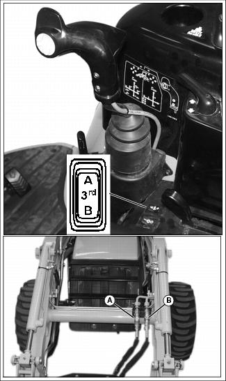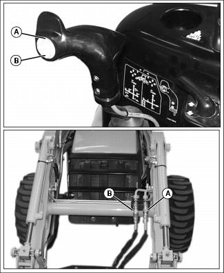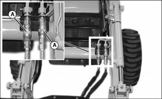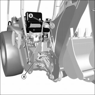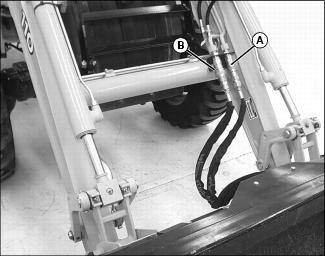 1. Connect top cylinder rod end hose to quick coupler (A) and the cylinder base end hose to quick coupler (B).