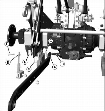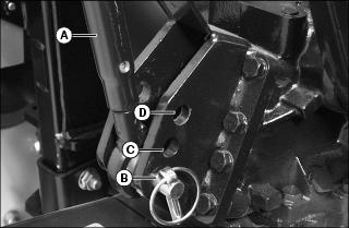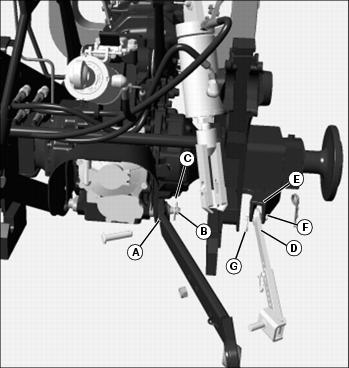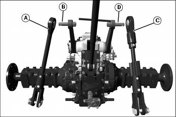 2. Install adjustable lift link (C) onto right rockshaft arm pin (D).