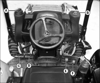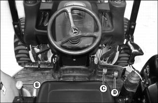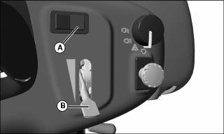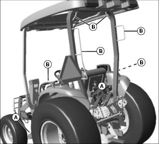 · Use steps (A) and handholds (B) when entering and exiting the operator station.