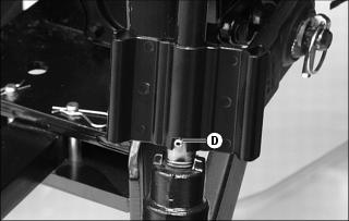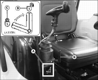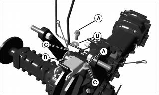 4. Place top cylinder support bracket (D) on top of seat cables (C) on rockshaft housing.