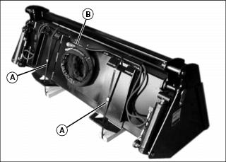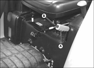 1. Install base end of tilt cylinder (A) onto right rockshaft arm pin (B).