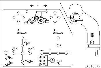 · Use step (A) and handhold (B) when entering and exiting the backhoe.