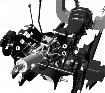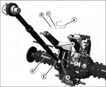 5. Raise draft link and align lift link clevis (H) with draft link hole (I).