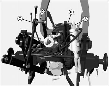 3. Install lift link (C) onto left rockshaft arm pin (D).