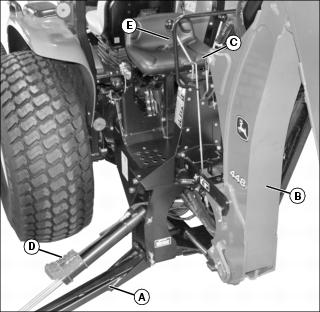IMPORTANT: Avoid damage! Always check tractor hydraulic fluid level before operating backhoe.