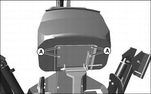 2. Stand in area between right stabilizer leg (A) and boom (B), facing the tractor.