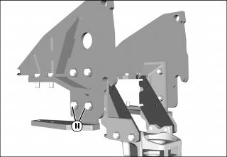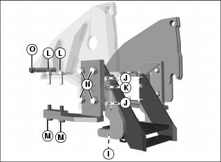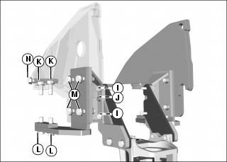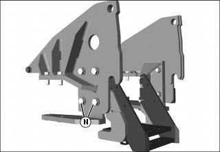 9. Install two M16x60 cap screws (N) and 5/8 in. washers in bottom two holes in both RSA mounting plates. Tighten to 217 N•m (160 lb-ft).