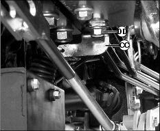 14. Tractor RH side only: Move spring bracket (BB) back to its original position and tighten ROPS bolt (CC) to 138 N•m (102 lb-ft).
