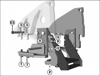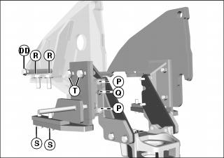 a. Tighten the four M14x45 cap screws (P) in bottoms of hook weldments to 215 N•m (158 lb-ft).