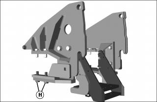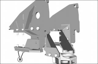 7. Remove two M16x60 cap screws (H) and washers securing mount weldments and pivot plates to bottom of left and right rear axle. Retain hardware for installation later.