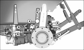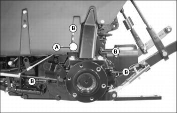 4. Remove four cap screws (B) on sides of drawbar assembly.