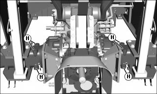 a. Tighten the four M14x45 cap screws (I) in bottoms of hook weldments to 215 N•m (158 lb-ft).