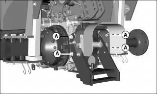 3. Remove four cap screws (A) and washers in sides of drawbar hitch support.