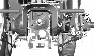 d. Tighten the four M16x60 cap screws (T) installed on the bottom of the rear axle to 258 N•m (190 lb-ft).