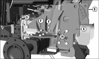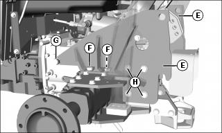 NOTE: For tractors with hydrostatic transmission, install two additional 5/8 in. hardened washers behind the RSA mounting plates on the forward M16x130 bolt (F).