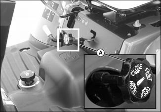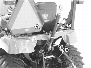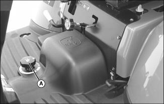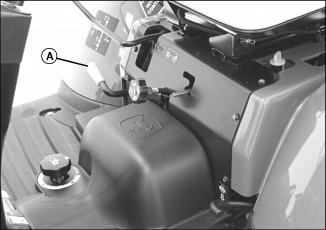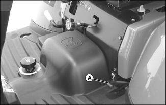 Use mower height control knob (A) to adjust mower cutting height, and lock mower lift kit rear draft arms in raised position. See your mower deck operator's manual for instructions.