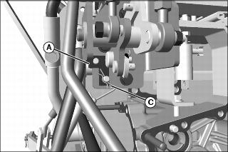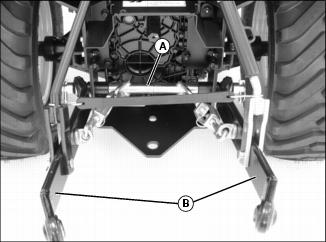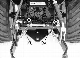 1. Secure the safety chain around the crossbar (A) that supports the lower draft arms (B).