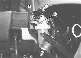 C - Engine Oil Pressure Light - This light will turn on when the ignition key is in the ON position and the engine is not running. If this light turns on while the engine is running, engine oil pressure is too low. Stop engine.