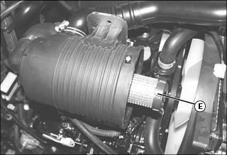 3. Remove and discard secondary air filter element (E). Replace with a new secondary air filter element.