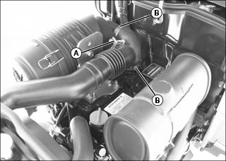 3. Remove air intake pipe (A) from position on top of radiator.