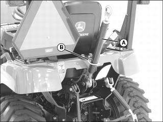 Use mower height control knob (A) to adjust mower cutting height, and lock mower lift kit rear draft arms in raised position. See your mower deck operator's manual for instructions.