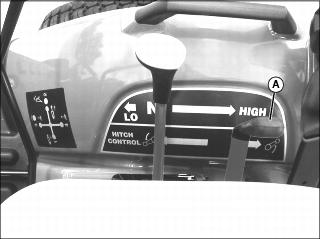 1. Push PTO switch knob to the disengaged/off position.