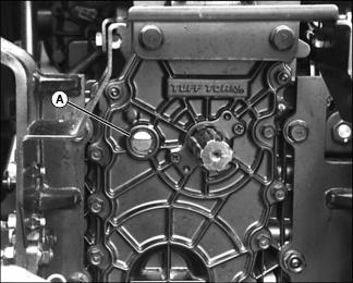 2. Check oil level in sight glass (A) at rear of transaxle case. Oil level should be at 1/2-3/4 of sight glass.