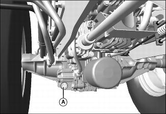 2. Loosen and remove dipstick (A) located on right side of front axle.