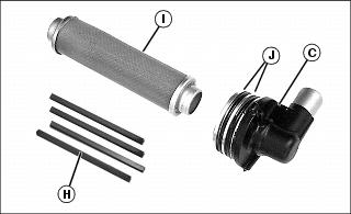 14. Inspect O-rings (J) for damage or cracking. Replace if necessary.