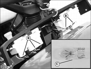 2. Remove two screws (A) and lens (B) from the warning light/taillight assembly.