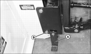 7. Install bolts and nuts in holes to raise or lower the scraper blade in 13mm (1/2 in.) increments.