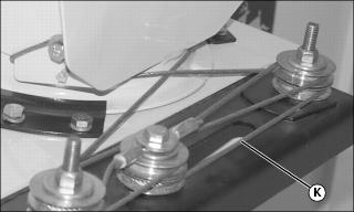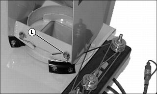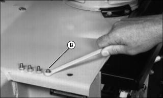 4. Remove two stop nuts, washers (A), and cable shield (B). Remove two washers from threaded studs.