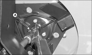 NOTE: A shear bolt (A) is installed in each end of auger shaft. The shear bolt will break if attachment hits a solid object. This will protect the auger and attachment from serious damage.