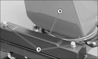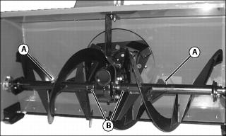 Lubricate fittings(A) with grease. Apply grease until it just comes out of auger shafts (B) at gearbox.