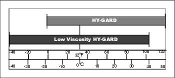 John Deere Low Viscosity HY-GARD™ transmission/hydraulic fluid is recommended. John Deere HY-GARD transmission/hydraulic fluid may also be used for temperatures above -18? C (0? F).