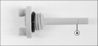 4. Remove dipstick again. Oil level should be indicated on the dipstick, but not above the full line (B). If oil level is low: