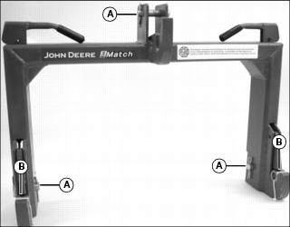Front weight bracket (A) is an integral part of the machine frame. The bracket will hold up to five Quick-Tatch® weights.