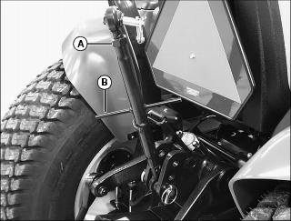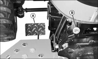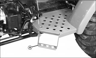 Step (A) is located on the left side of machine. Use step for entering and exiting the operator station.